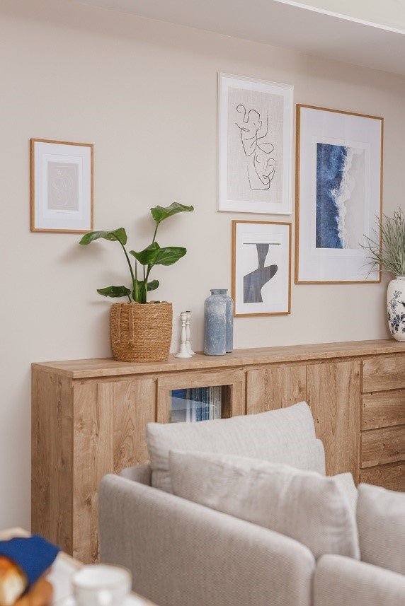 Na początku kluczowy jest dobór odpowiedniej palety barw, ewentualnych wzorów, tekstyliów i dodatków. Nie zapomnij też o zielonym akcencie, czyli roślinach. We wnętrzu Karoliny na ścianach króluje beż, ponieważ jasne kolory znakomicie sprawdzają się w pomieszczeniach o niewielkich wymiarach. Poza tym jasne barwy niezmiennie czynią przestrzeń optycznie większą, elegancką oraz pozwalają na dobranie dowolnych mebli i elementów dekoracyjnych. Pozostając w temacie dekoracji – na jednej ze ścian Karolina zastosowała drewniane listewki, które zostały pomalowane w tym samym odcieniu beżu. To niezwykle proste i tanie rozwiązanie, okazało się być również bardzo efektowne. Z powodzeniem możesz zaadaptować ten pomysł w swoim mieszkaniu.