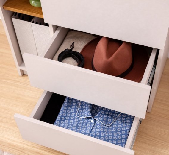 Zadbaj o zagospodarowanie strefy relaksu, snu i nauki w pokoju młodzieżowym dzięki doskonale dopasowanemu wyposażeniu. Praktyczna szafa, zawierająca pojemne półki oraz szuflady pozwoli pomieścić zarówno odzież, bieliznę, akcesoria jak i przedmioty, bezpośrednio związane z zainteresowaniami.